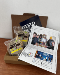 Scatola con 2 biscotti “Zaeti” realizzati da un forno BIO da ragazzi con disabilità + lettera dei Talents + opuscolo della cooperativa